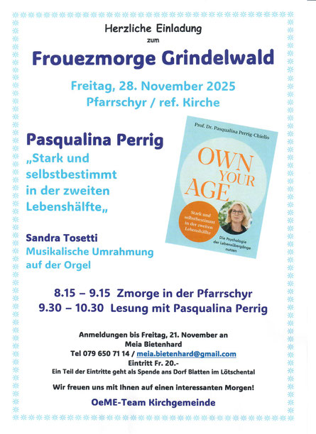Am 16. November 2015 lud das OeME-Team zum 2. Froue-Zmorge ein. Die bekannte Clownin Gardi Hutter startete ihre Tournee in Grindelwald mit der Wäscherin „Die tapfere Hanna“. Dies war